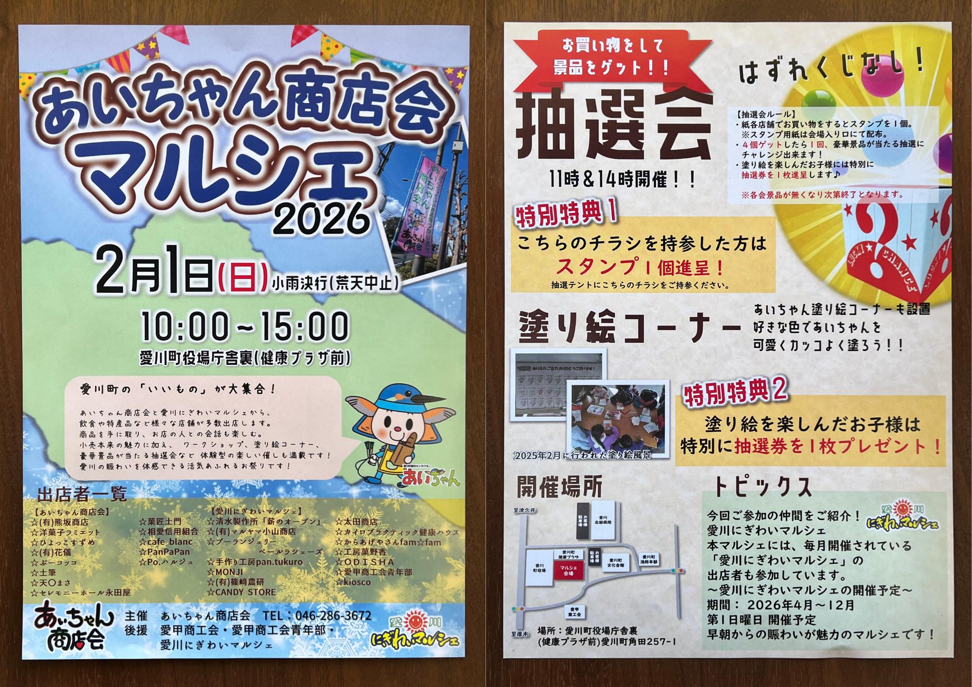 あいちゃん商店会と愛川にぎわいマルシェから様々な店舗が多数出店します